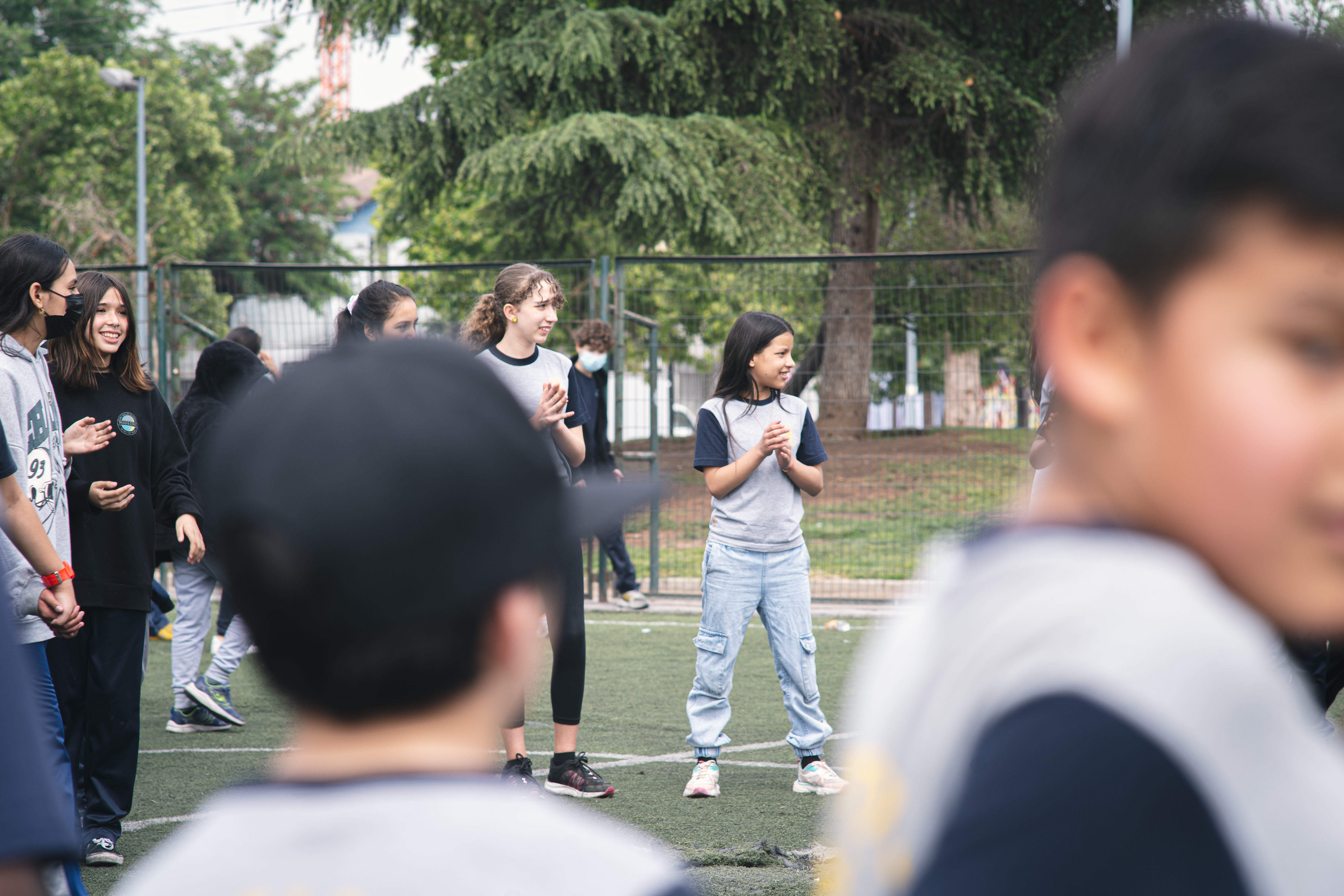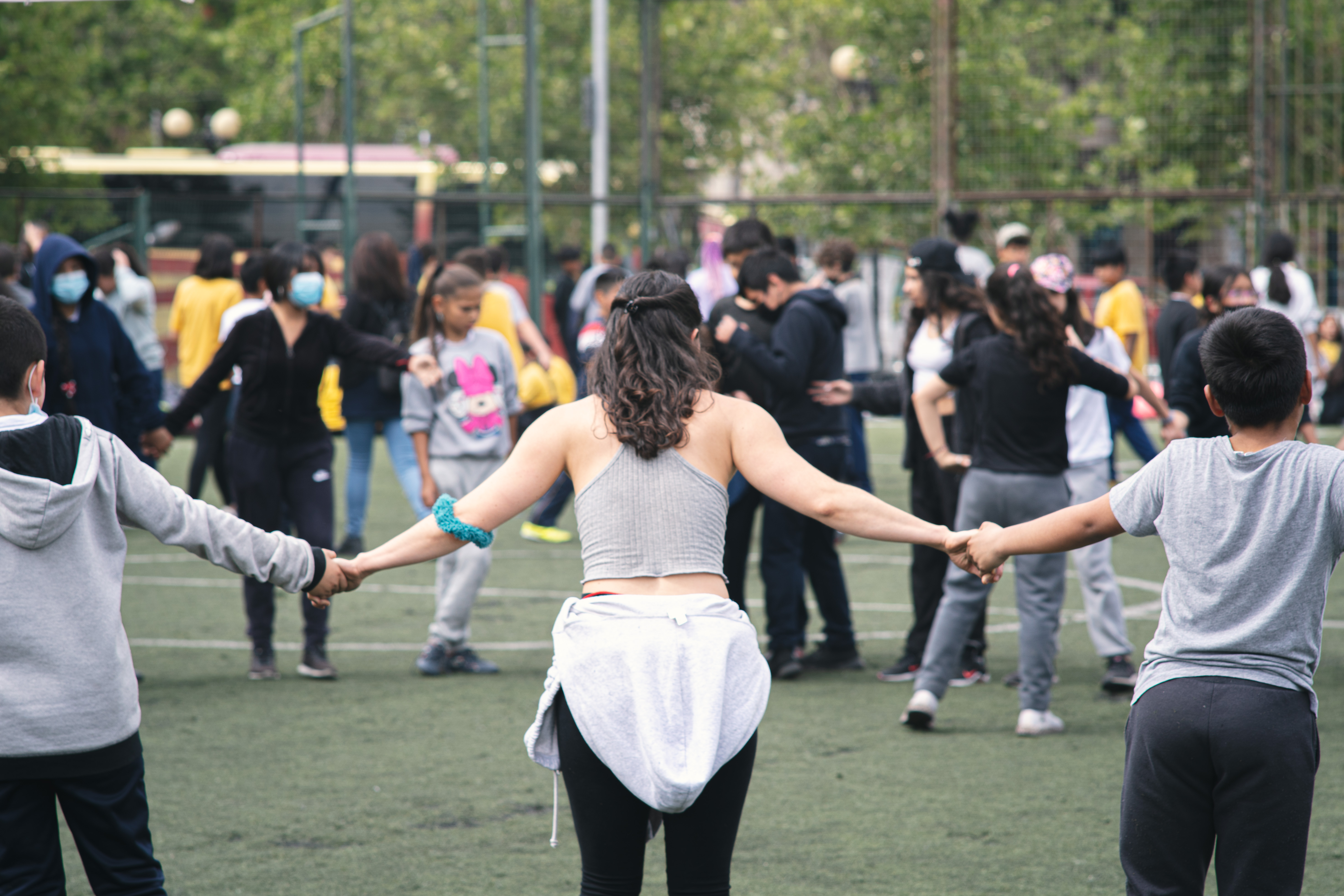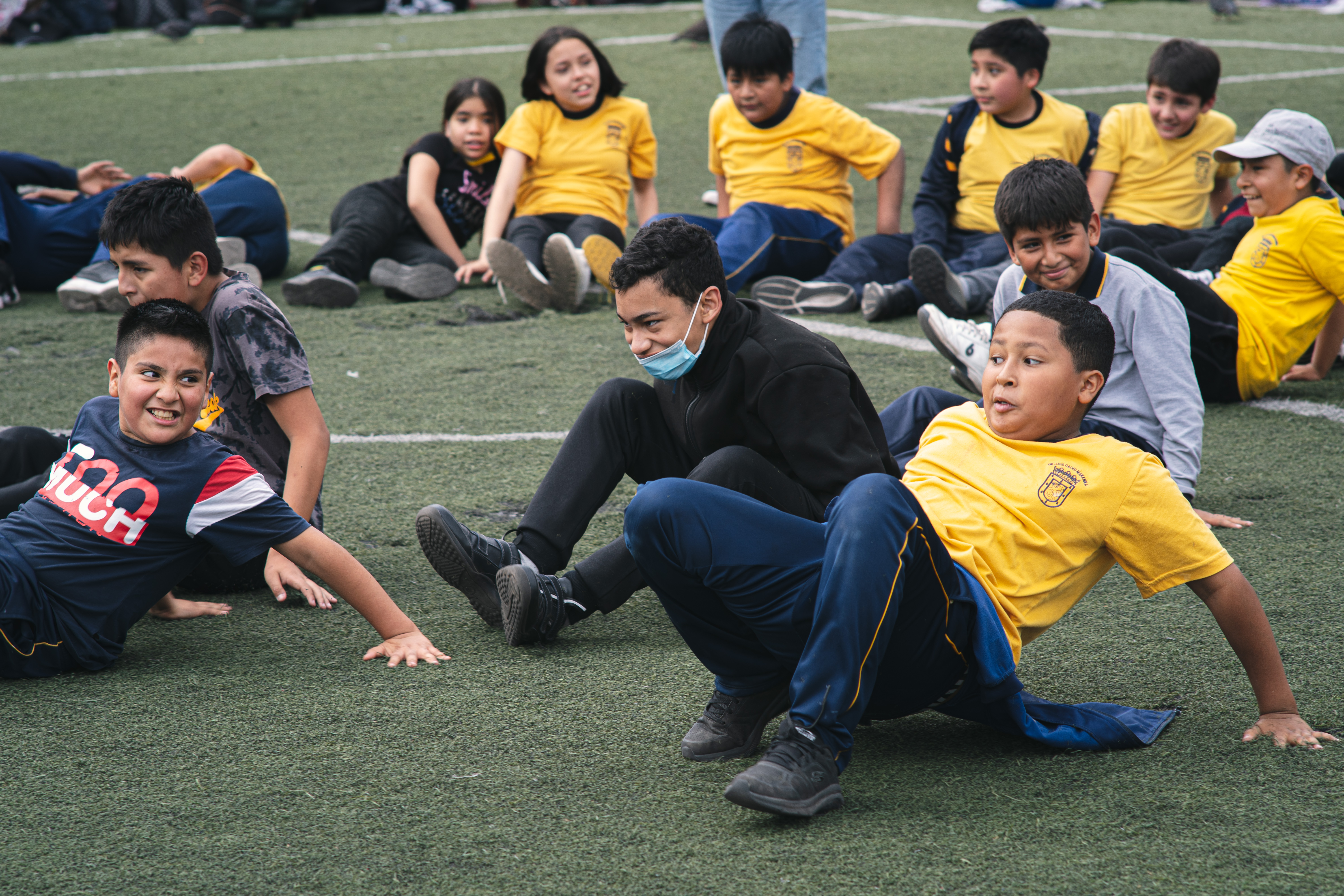 Con alrededor de 420 niñas, niños, niñes, nos hemos reunido para desplegar algunas ideas con respecto al cuerpo, la improvisación y en torno al Cuerpo en el presente. Espacio gestionado por encargados de Artes y Deportes de la Municipalidad de Santiago, quienes se han enterado del proyecto por nuestras Redes sociales, y han presentado gran interés en poder desarrollar actividades en conjunto. Pensando en el presente y futuro de las infancias de la comuna de Santiago, lo que para nuestro proyecto es una idea vital que nos sostiene en red y colaboración, resonando hacia las comunidades y sus diversidades.